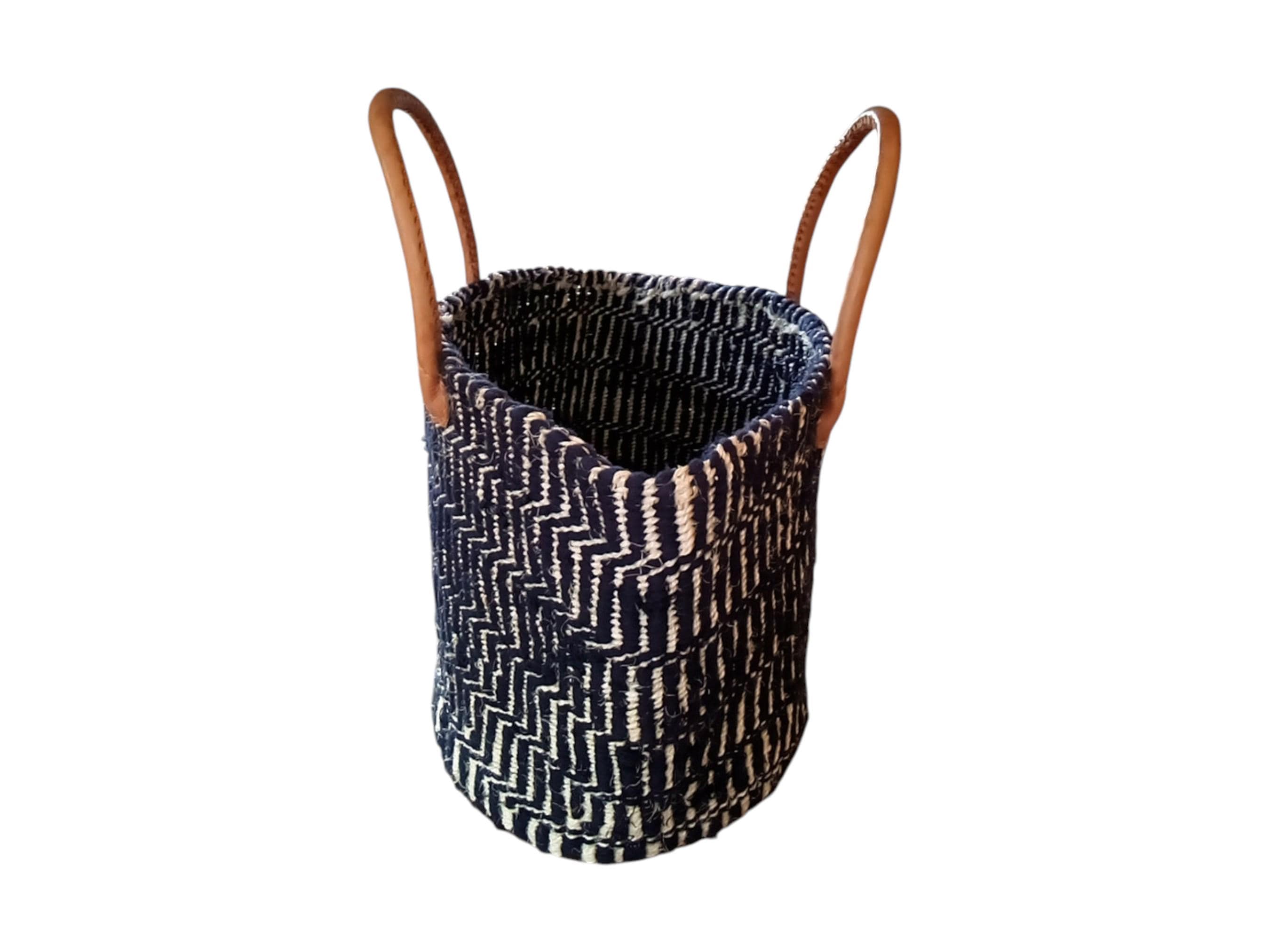 This beautiful, handwoven African sisal basket bag is a perfect blend of traditional craftsmanship and modern style. The bag features a classic, eye-catching black and white geometric weave that transitions seamlessly across seasons. Crafted from durable, natural sisal fiber, this bag is lightweight yet strong enough to be your go-to accessory. The sturdy, genuine leather handles provide comfortable support and a sophisticated contrast to the woven texture. This ethical handbag is handmade by Kenyan artisans, supporting fair trade practices and preserving traditional weaving techniques. It is the perfect size and style to use as a stylish boho beach tote, a unique summer shoulder bag, or a reusable woven market shopper. Searching for a thoughtful, sustainable gift? This sisal bag makes an excellent present for a lover of slow fashion or global décor. This high-quality, African basket bag is ready to ship and instantly elevate your everyday style.