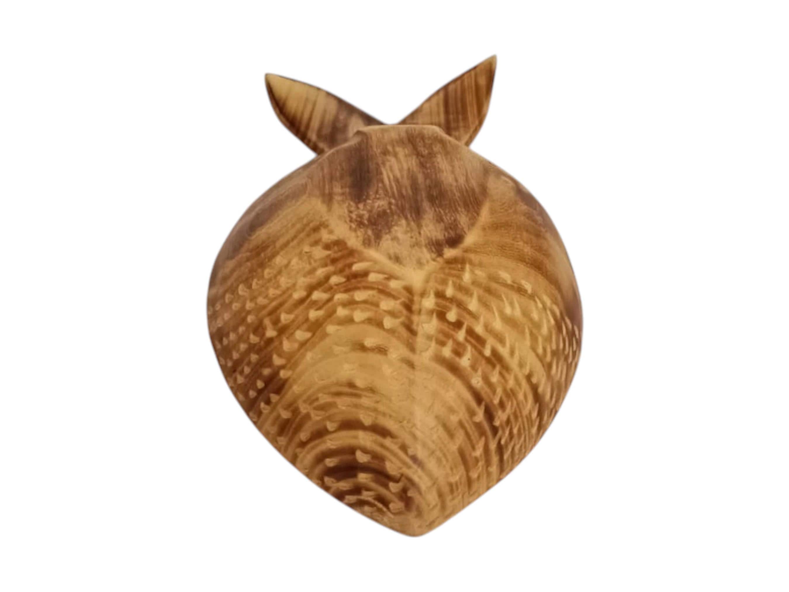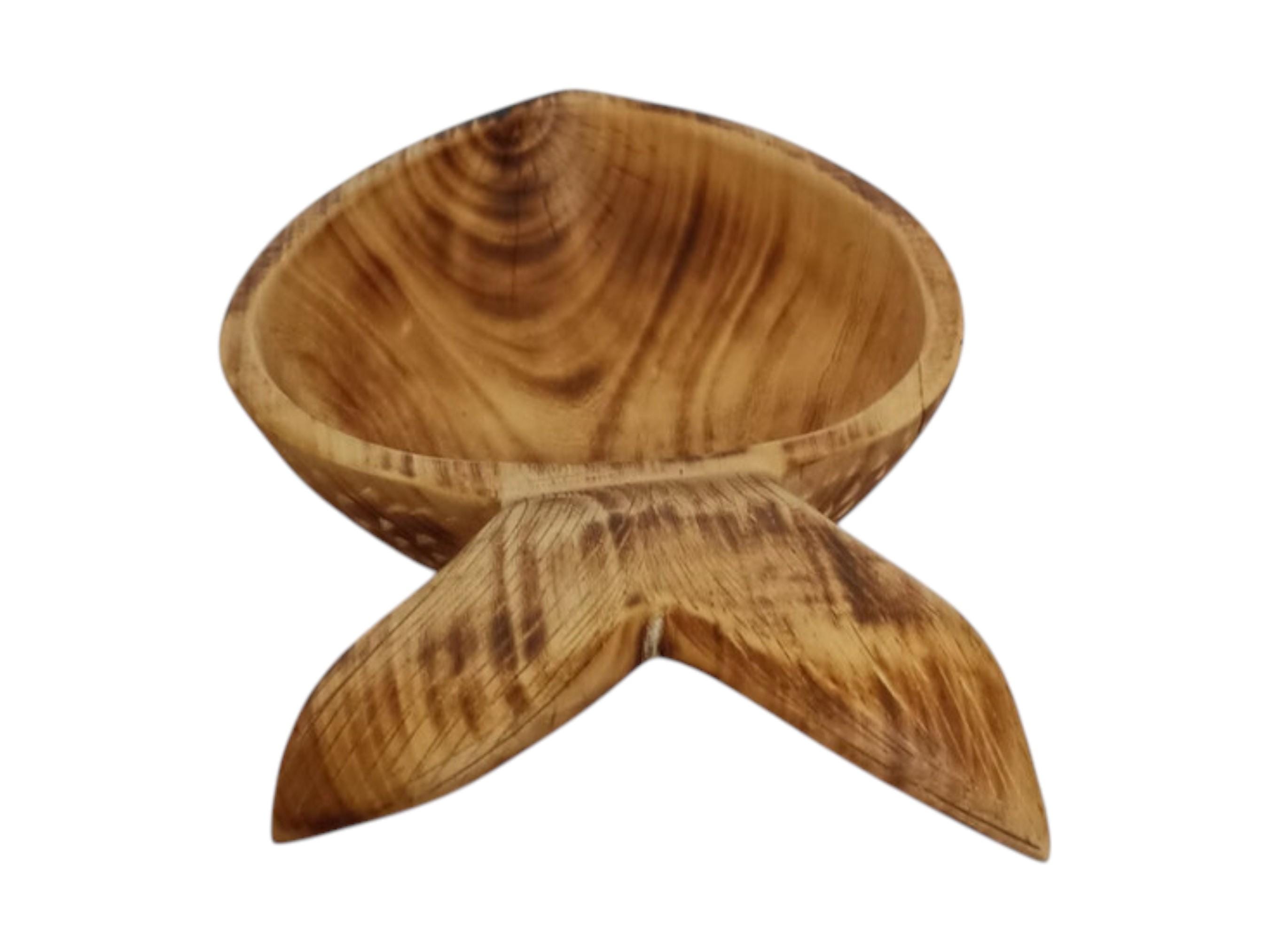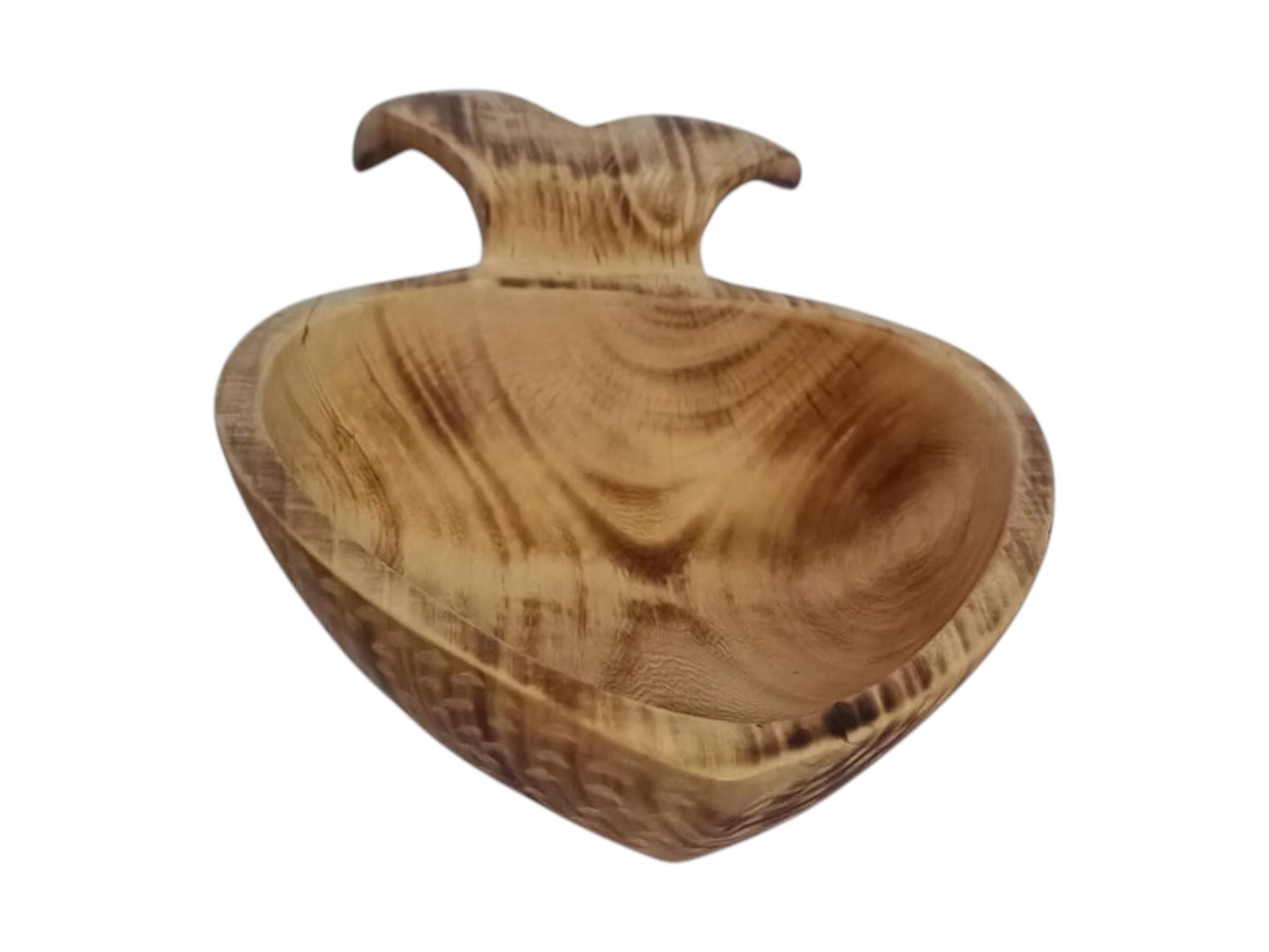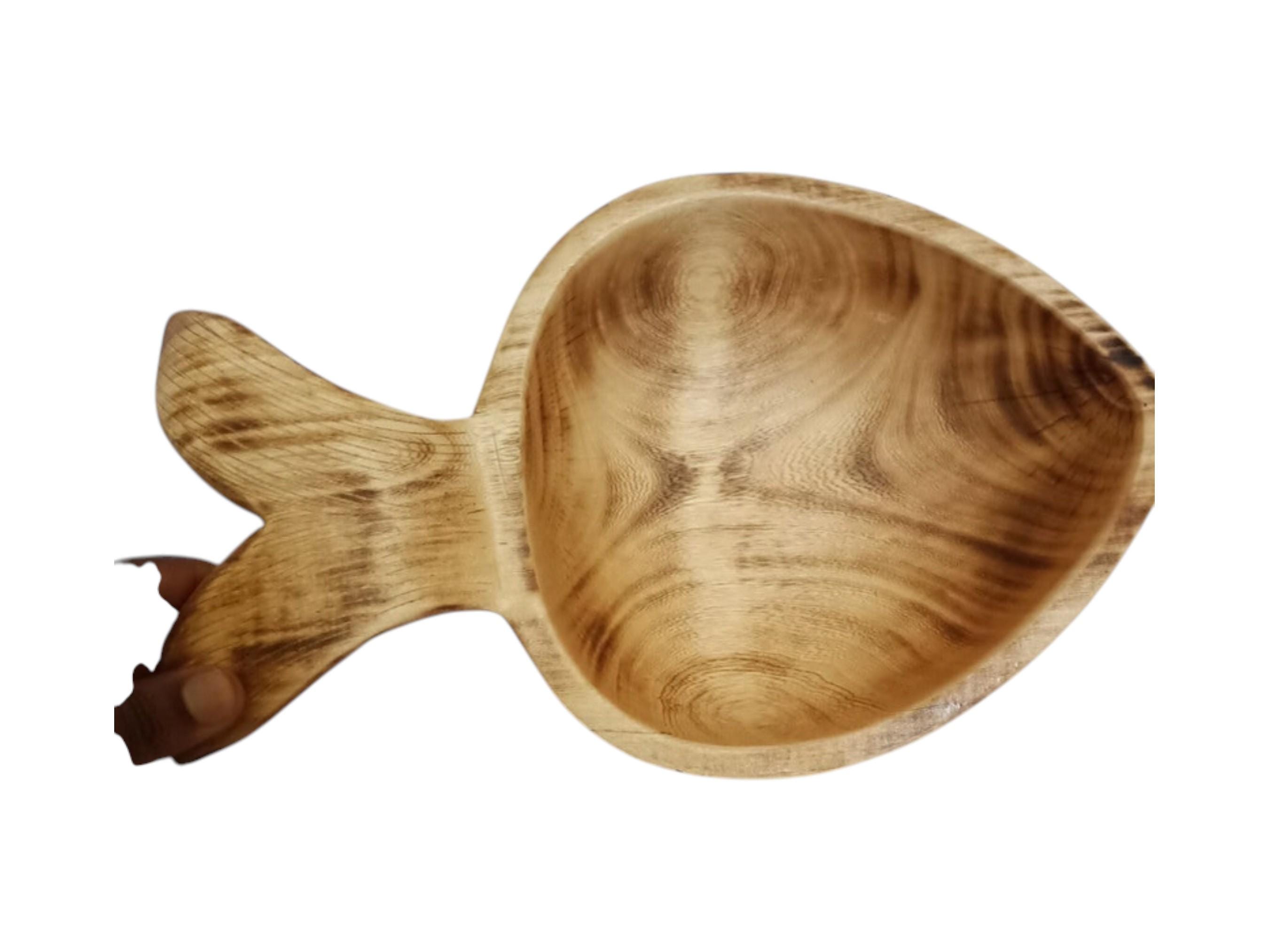 This delightful hand-carved wooden bowl is shaped like a whimsical, stylized fish, making it a unique and charming addition to any home. The bowl is meticulously sculpted from a single piece of hardwood, featuring a beautifully natural grain and a smooth, rustic finish. Its functional tail-shaped handle makes it easy to hold and serve, adding to its handcrafted charm. This unique dish is perfectly sized for serving individual portions of nuts, candy, sauces, or small appetizers for a nautical-themed gathering. Its distinctive shape makes it an excellent decorative accent for coastal, lake house, or rustic kitchen decor when not in use. As a quality piece of functional folk art, it’s a wonderful conversation starter on a dining table or kitchen island. Searching for a truly unique host or housewarming gift? This fish-shaped wood bowl is a creative and thoughtful choice. This beautiful piece of wooden servingware is ready to use and instantly brings an organic, playful feel to your space.