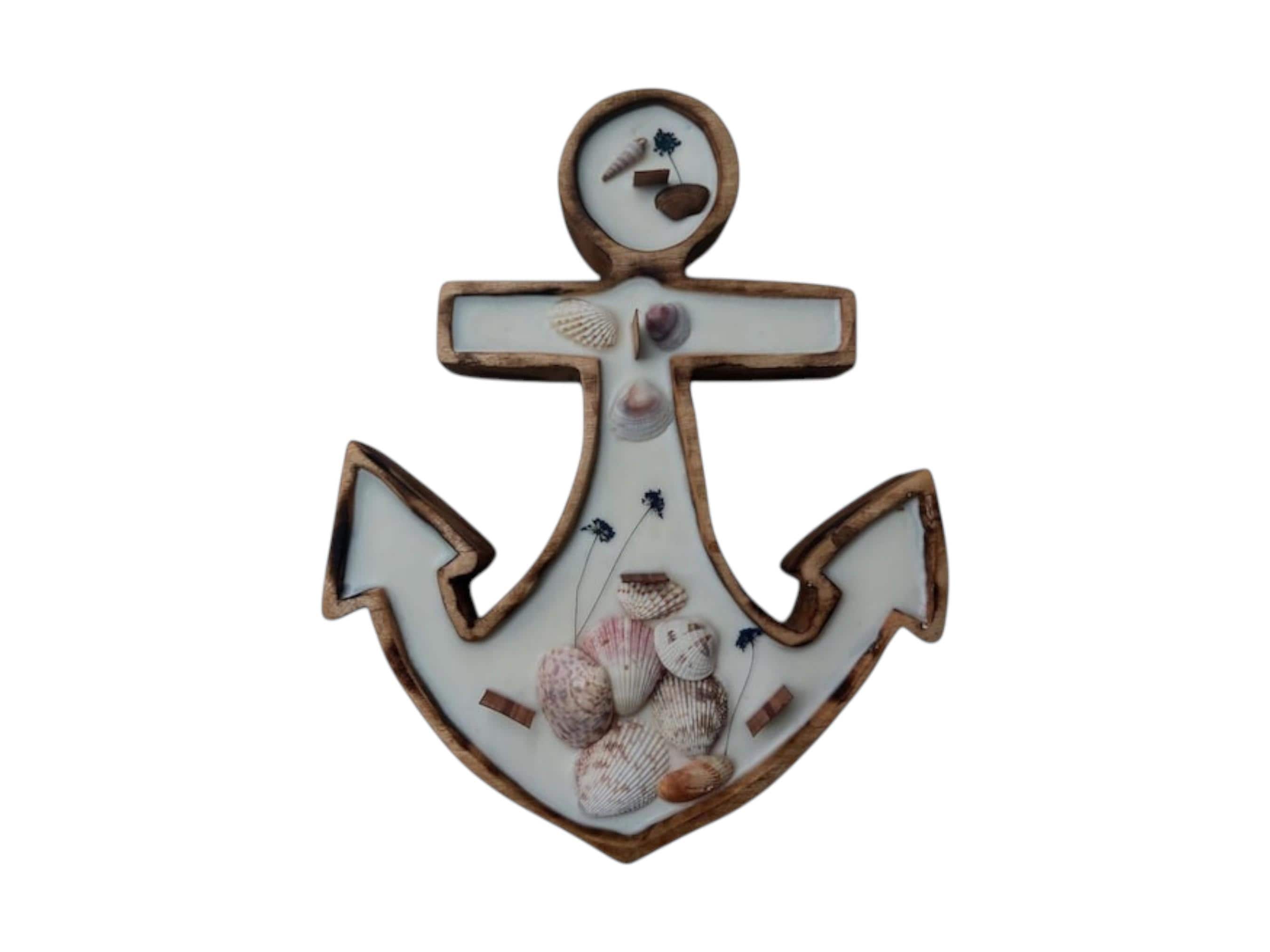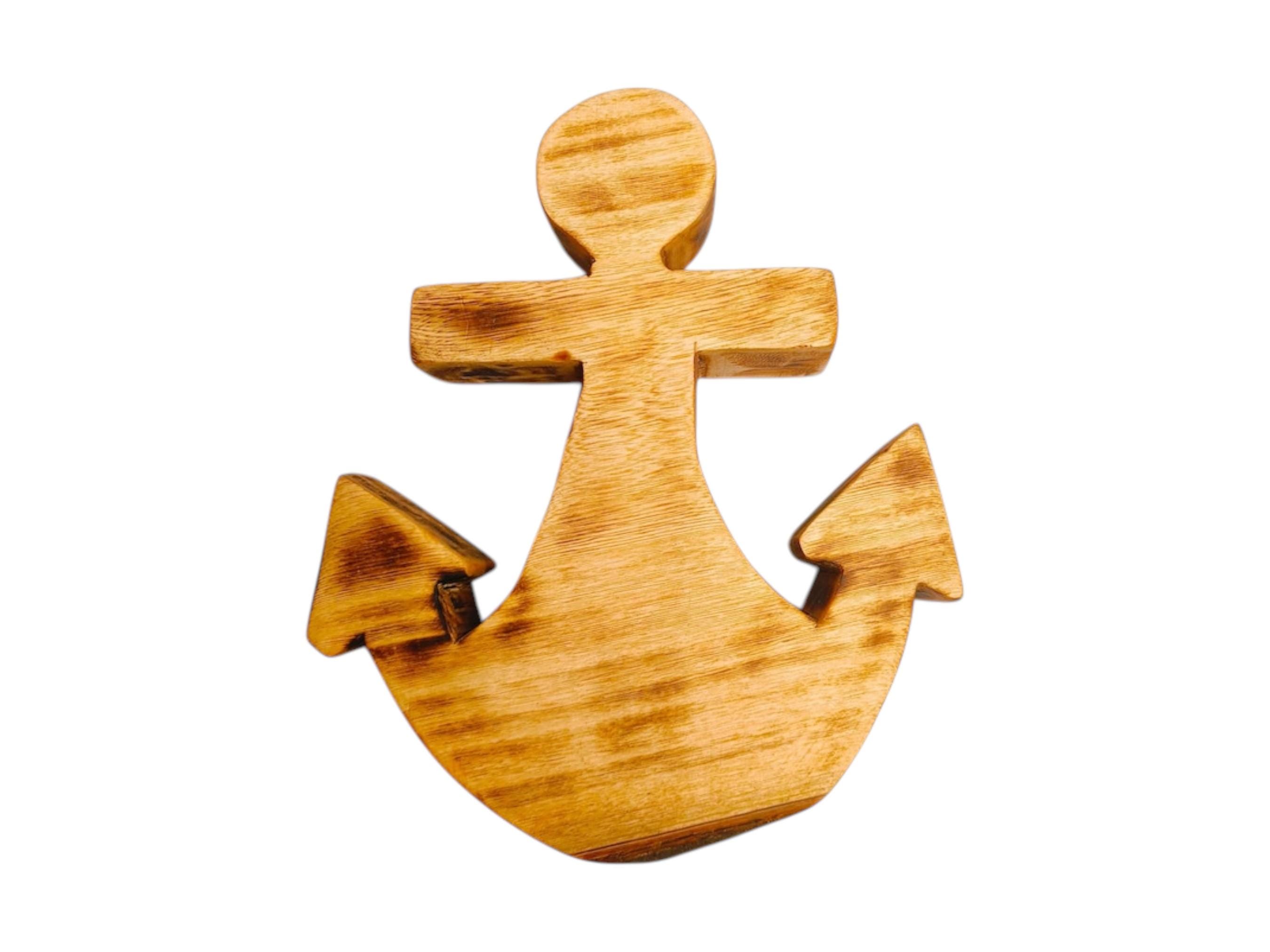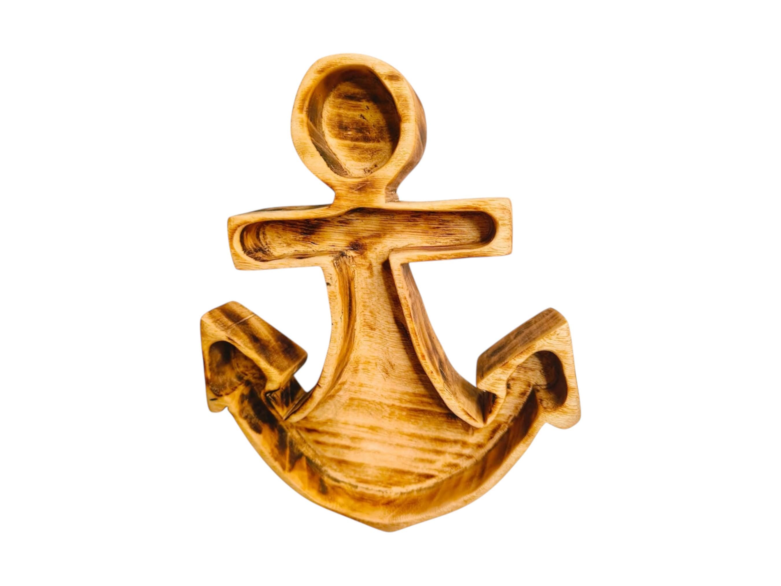 This charming hand-carved wooden anchor bowl is a perfect accent piece for any coastal, nautical, or rustic-themed home. The bowl is meticulously sculpted from a single piece of hardwood, featuring a beautifully natural wood grain and a warm, rustic finish. Its distinctive anchor shape includes multiple scooped cavities in the shank and flukes, allowing for diverse serving or organizing. This unique dish is ideally sized for use on a coffee table, entry console, or bar cart to hold keys, candies, or small treasures. It works beautifully as a decorative nautical centerpiece or can be used as a vessel for creating a custom beach-themed multi-wick candle. The durable construction and organic material make it a lasting and stylish addition to your beach house or lake cottage decor. Searching for a thoughtful, sea-inspired housewarming or captain's gift? This anchor bowl is a durable and unique present. This beautiful piece of coastal servingware is ready to use and instantly brings a sense of the sea into your space.