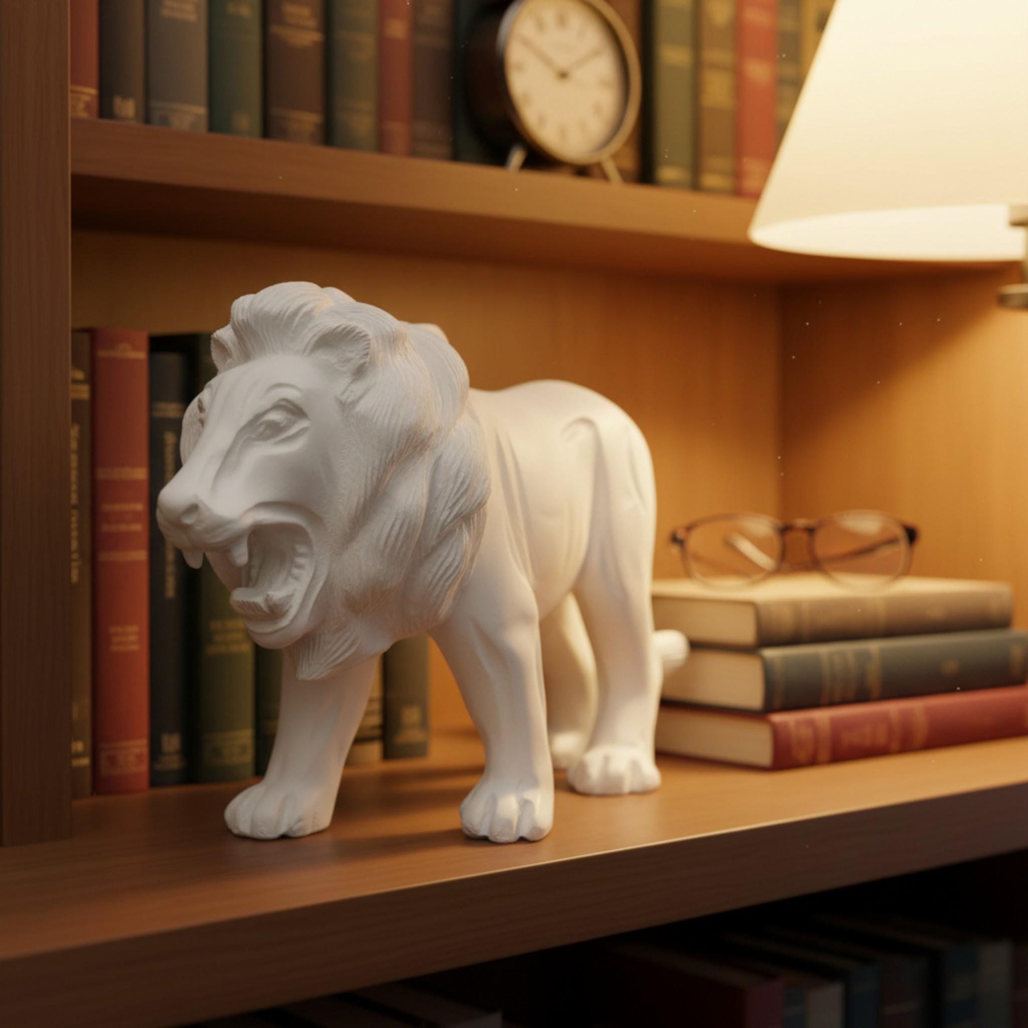 Bring a sense of power and regal elegance to your interior with this magnificent white lion sculpture. This piece captures the "King of the Jungle" in a dynamic, roaring pose, showcasing finely detailed muscularity and a flowing mane that exudes strength and authority. Crafted with a smooth, pristine white finish, it serves as a sophisticated focal point that complements both modern minimalist and classic traditional styles.